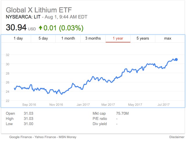 LIT has been around for 7 years, but it's not a stunning stock story like Tesla. What it is, however, is a safer bet on lithium. There's not as much to lose here. Year-to-date, LIT is up over 25 percent, and they remain steady.