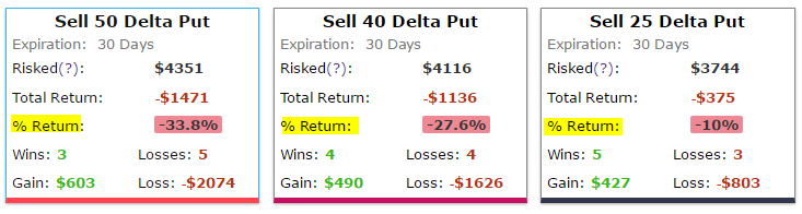 That is to say, if we sold puts every 30-days in IBM, but every time earnings approached, we closed the strategy (held no position), then started the strategy again after the volatility of earnings had ended. Here are the results: