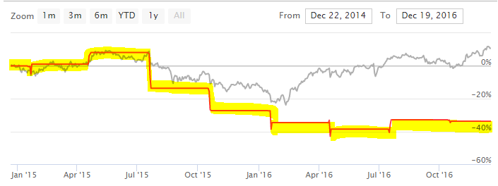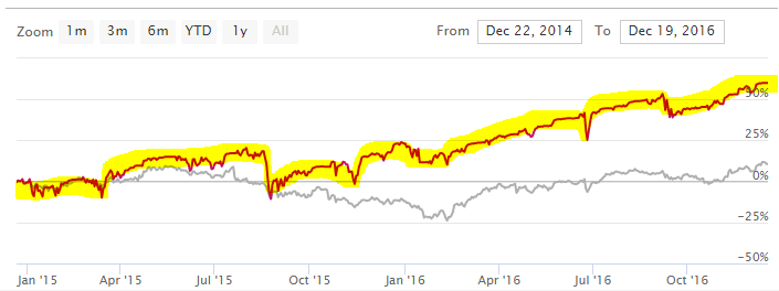 All of a sudden, the short put strategy turned out quite well and far outperformed the stock too. Here is the option strategy compared to the stock: